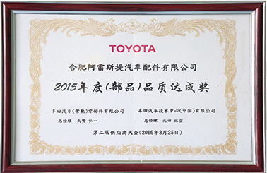 2015年度(部品)品質(zhì)達(dá)成獎(jiǎng)