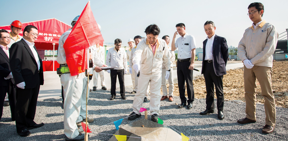 2017年7月25日,高橋社長、高橋管理本部長、荒井品質本部長、GAC間淵總經(jīng)理,AHC松下總經(jīng)理、近藤副總經(jīng)理及AHC高層管理者與施工方相關人員共同出席3#鑄造工廠奠基儀式。