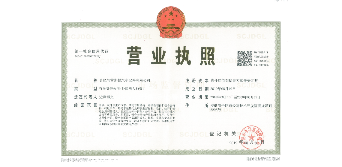 阿雷斯提輻射安全許可證、營業(yè)執(zhí)照及一般納稅人證明