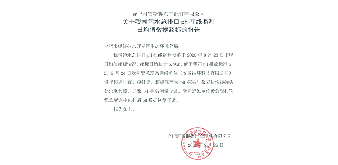 關(guān)于我公司廢水總排口pH在線監(jiān)測儀器數(shù)據(jù)超標(biāo)的報(bào)告