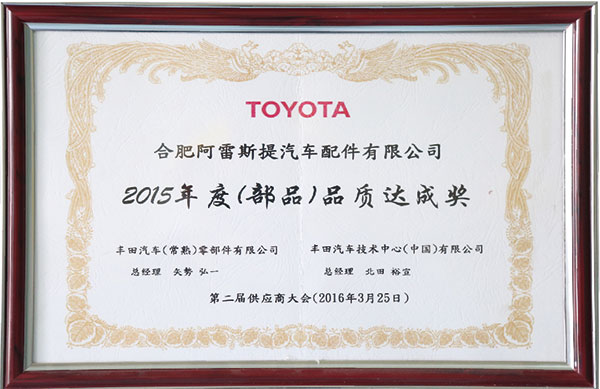 2015年度(部品)品質(zhì)達(dá)成獎(jiǎng)