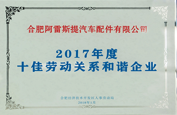2017年度十佳勞動關(guān)系和諧企業(yè)